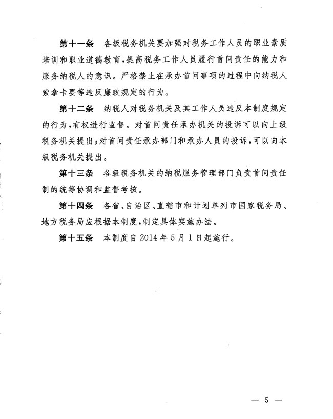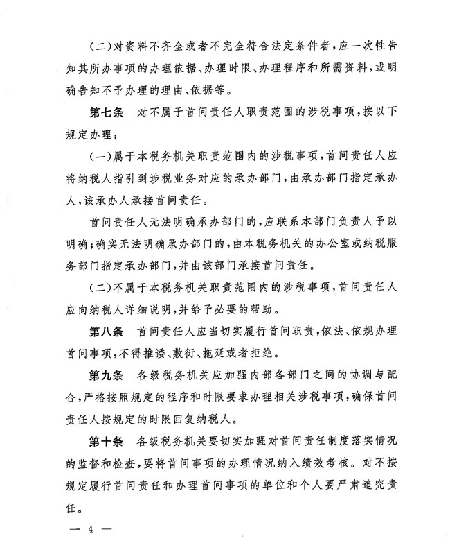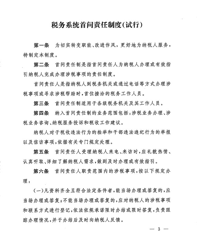 國家稅務(wù)總局關(guān)于印發(fā)《稅務(wù)系統(tǒng)首問責(zé)任制度(試行)》的通知